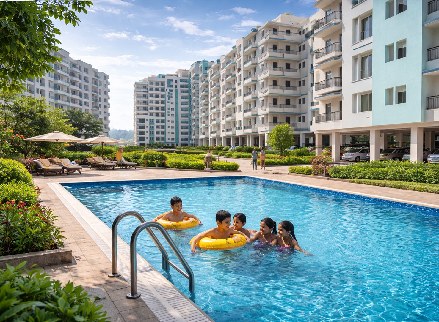 A thoughtful blend of lifestyle offerings including swimming pools with a dedicated kids’ zone, clubhouse facilities with jacuzzi and steam, fitness spaces, sports courts and curated areas for everyday recreation.