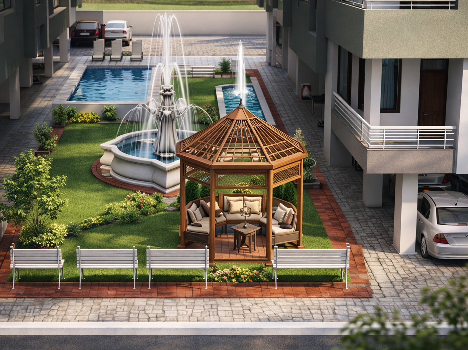 2 gardens and designer Fountains